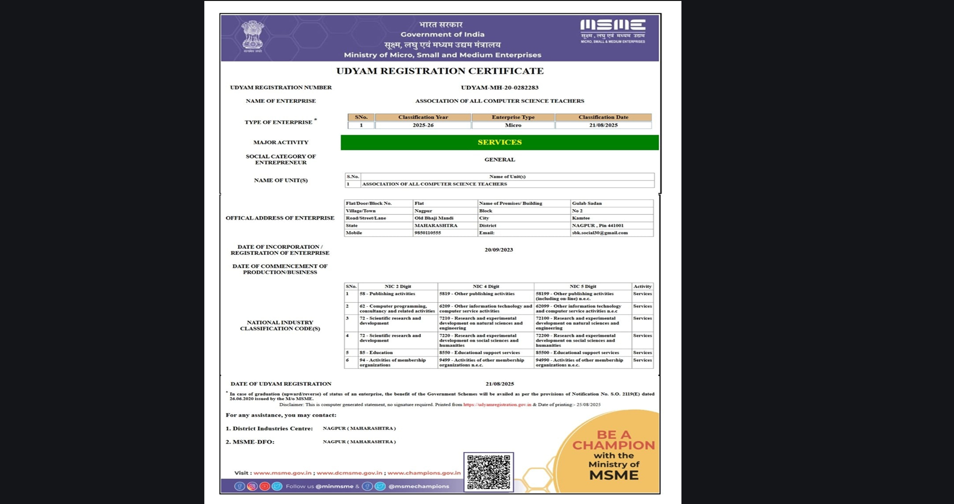 MSME Certificate